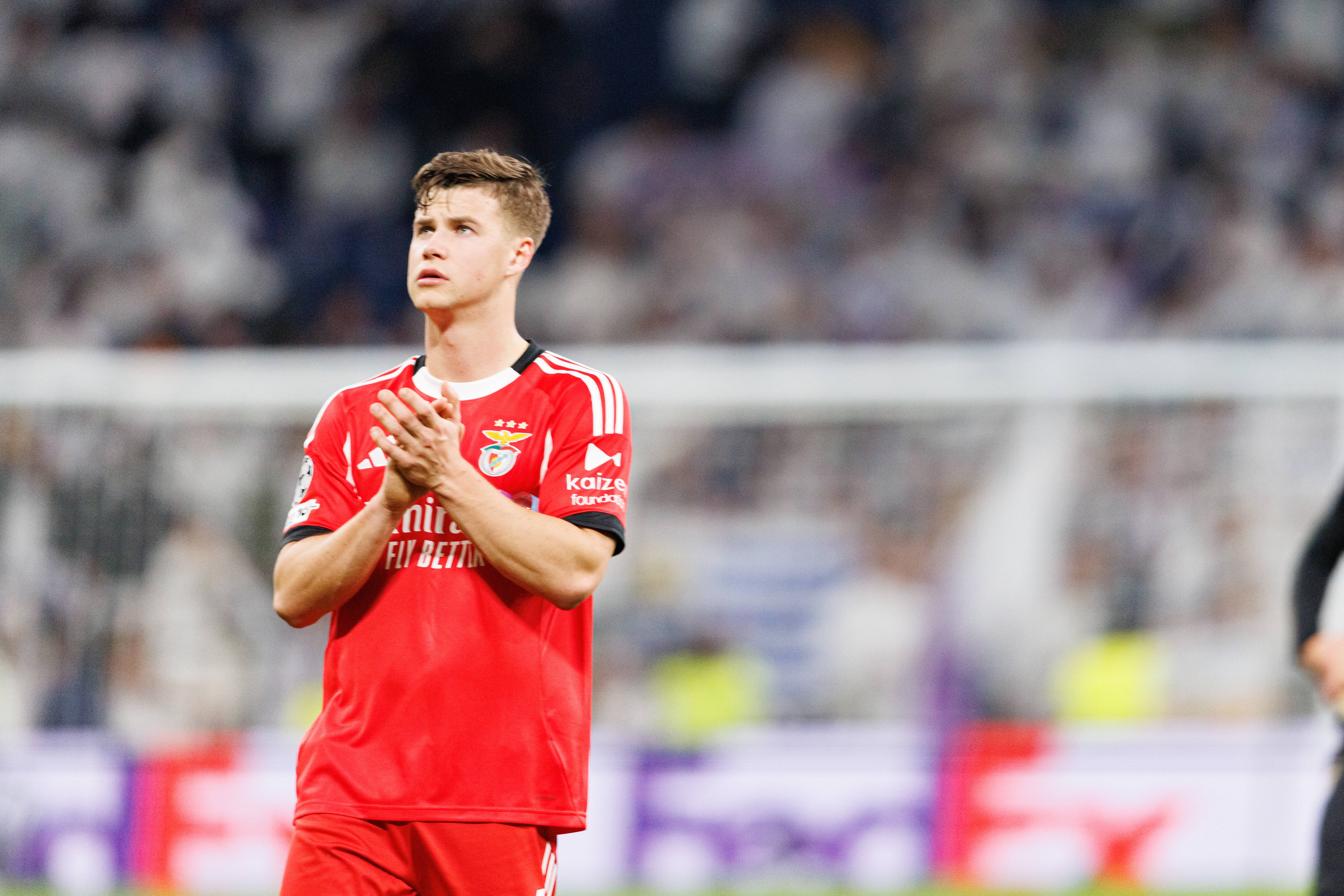 4月1日讯 据葡萄牙媒体《记录报》报道,曼联考虑报价本菲卡左后卫萨穆埃尔·达尔。萨穆埃尔·达尔现年23岁,瑞典左后卫,2025年从罗马加盟本菲卡,本赛季为球队出战26场葡超,贡献1球1助攻,德转身价1200万欧。《记录报》报道称,曼联对达尔给予高度评价,他们的球探本赛季现场观看了十多场本菲卡的比赛,目的只有考察这位左后卫,考察结果令人满意,这家英超俱乐部正考...
